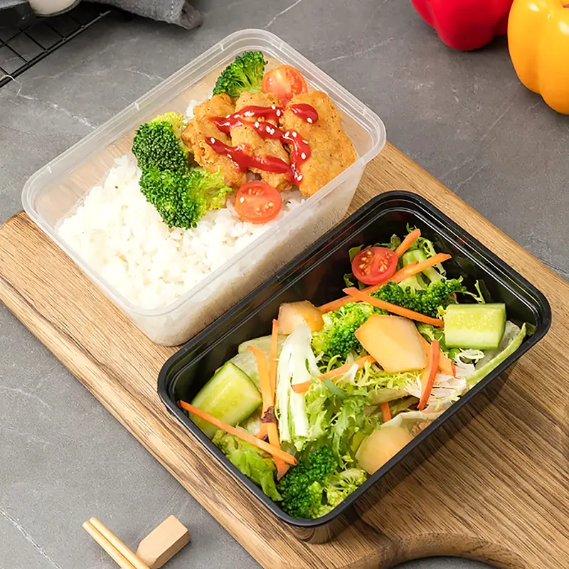 Ningbo Powerr поставляет недорогие прозрачные прямоугольные пластиковые пищевые контейнеры емкостью 750 мл в Китае. Изготовлен из безопасного материала, в нем можно хранить горячие блюда, его можно ненадолго поставить в холодильник или поставить в микроволновую печь, он не имеет запаха и деформации. Его золотая емкость объемом 750 мл идеально подходит для полноценного обеда на одного человека, вмещая в себя основные блюда и гарниры без отходов. Плотно закрывающееся дно и крышка предотвращают протекание супа и подходят для острых блюд. Его более широкая сверху и более узкая конструкция обеспечивает стабильную штабелировку, удобную для оптовой подготовки продавцов и хранения пользователей, сохраняя при этом максимальное пространство. Прозрачные версии четко демонстрируют пищу, черные скрывают остатки; Также доступны нестандартные цвета, печать и новые инструменты.